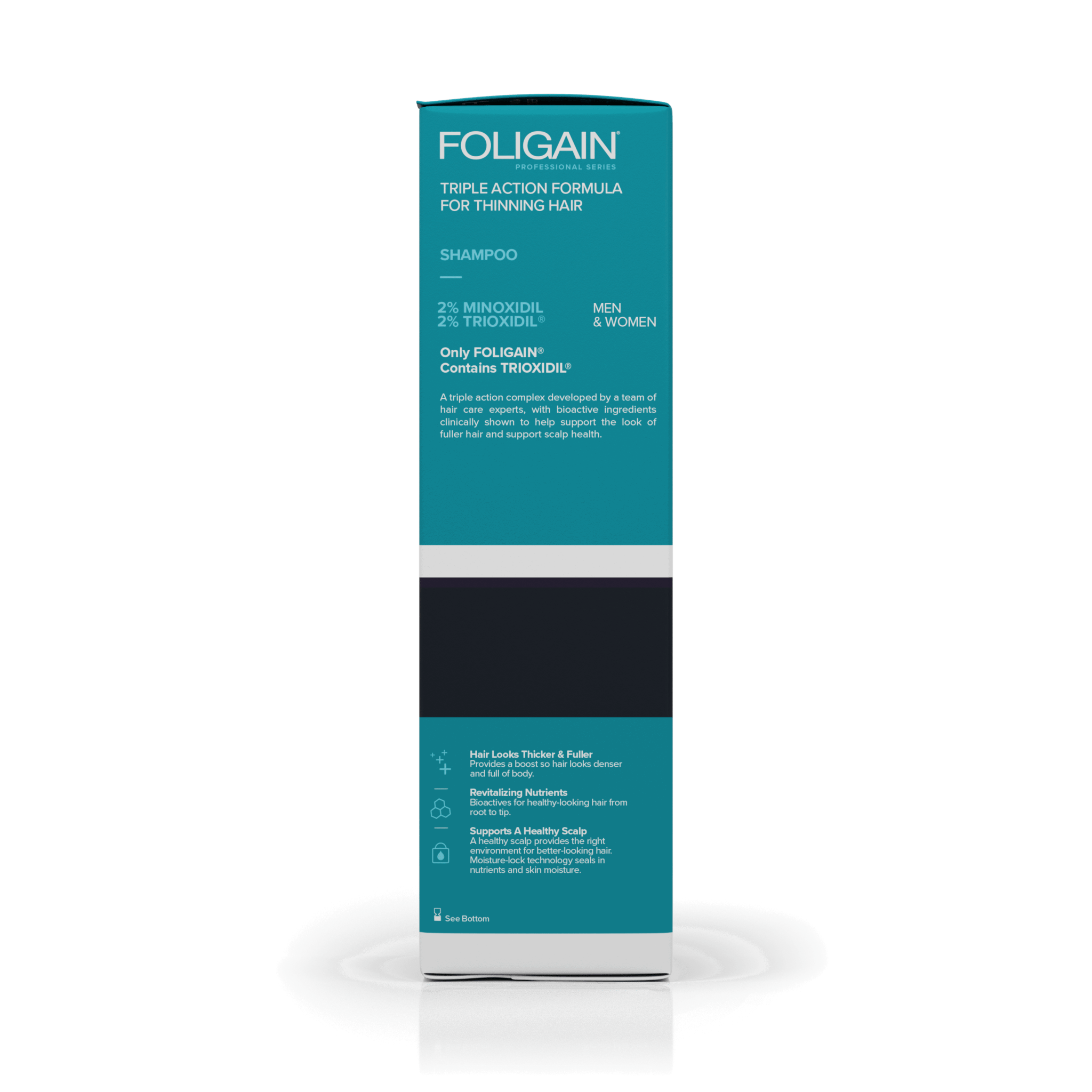 Only FOLIGAIN contains Trioxidil, a triple action complex with clinically tested ingredients that target the causes of thinning hair.